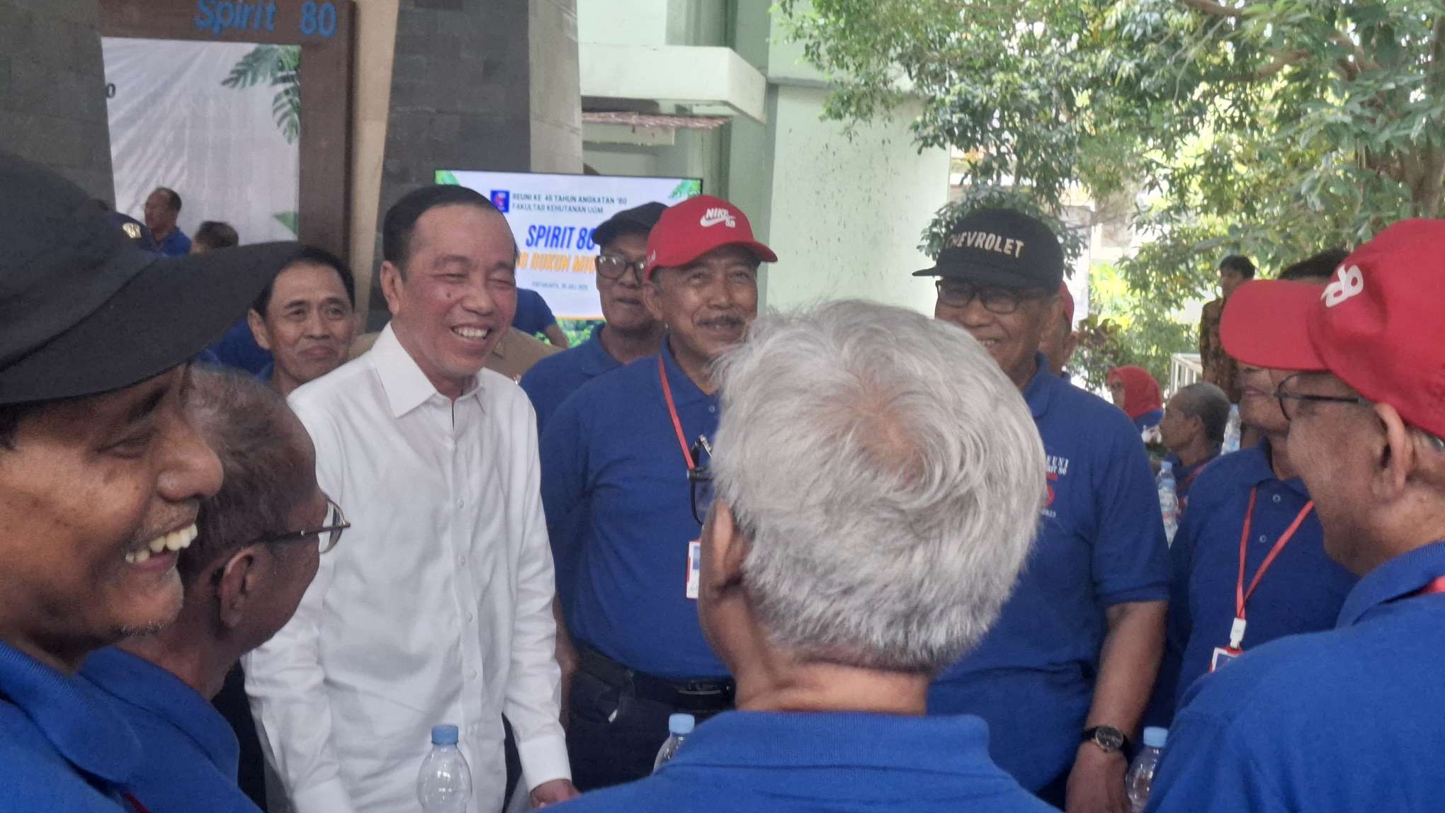 Ditengah-tengah sambutannya, salah satu alumni ‘nyletuk’ karena ada temannya yang bernama Mulyono. Diketahui Mulyono juga merupakan nama asli Jokowi.