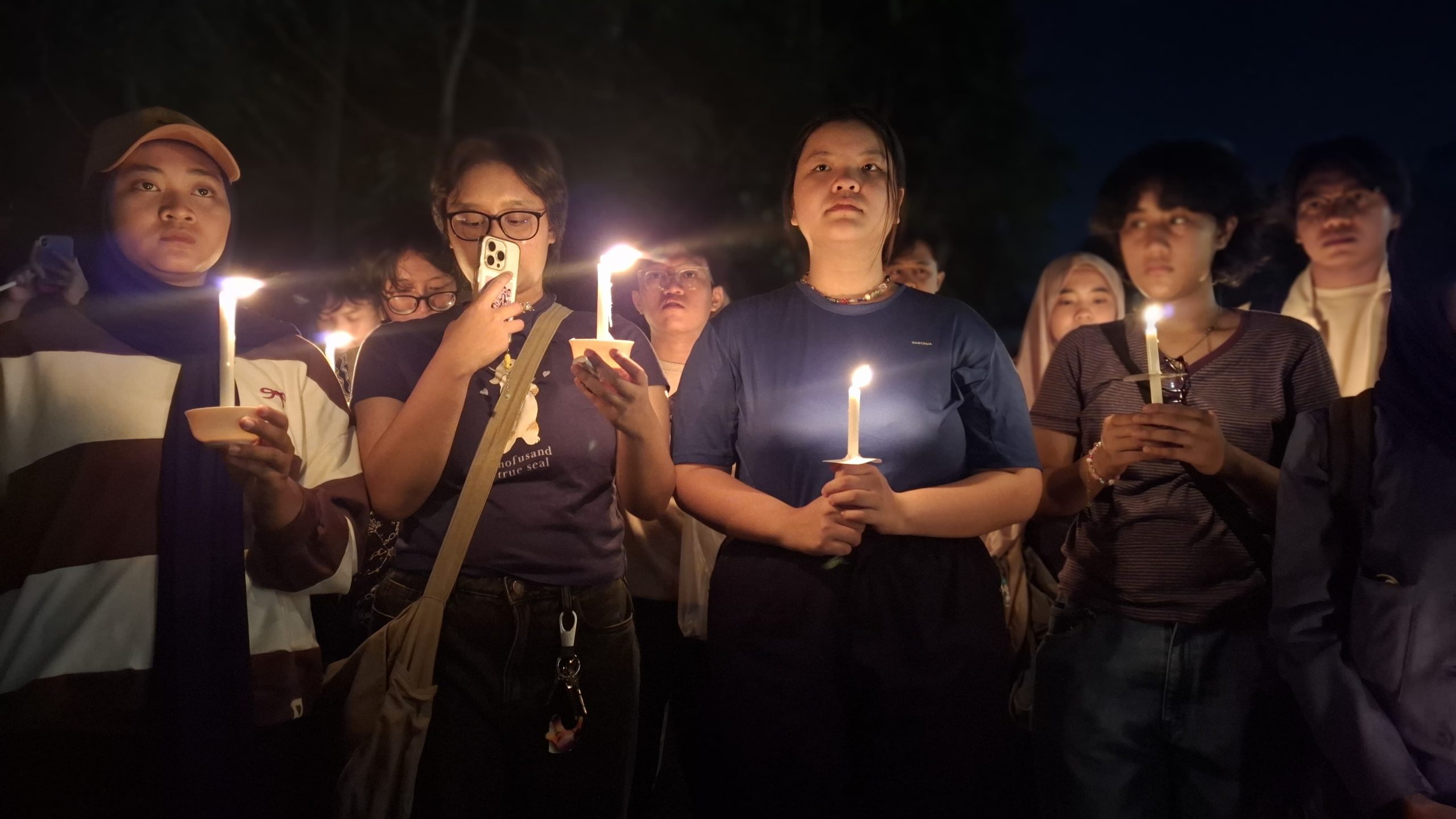 “Dan aksi lilin inilah kita lakukan ya untuk menerangi terhadap phhon pengetahuan dengan cahaya lilin ini yakni menerangi semangat kita untuk tiga hari aksi berturut-turut (27 – 29 Agustus. Tanggal 27 besok di sepanjang Malioboro titik kumpul di Parkir Abu Bakar Ali, hari kedua akan melaksanakan diskusi, dan ketiga menyambangi Kantor KPU,” terang Monica.