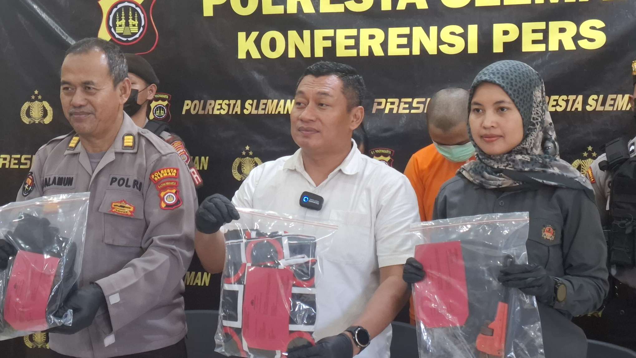 Dari kejadian tersebut, Polresta Sleman juga berhasil mengamankan sejumlah barang bukti diantaranya satu buah kunci pralon berbahan besi sepanjang 25–30 cm, satu potong sprei, dan jaket hitam yang diduga terkait peristiwa tersebut.