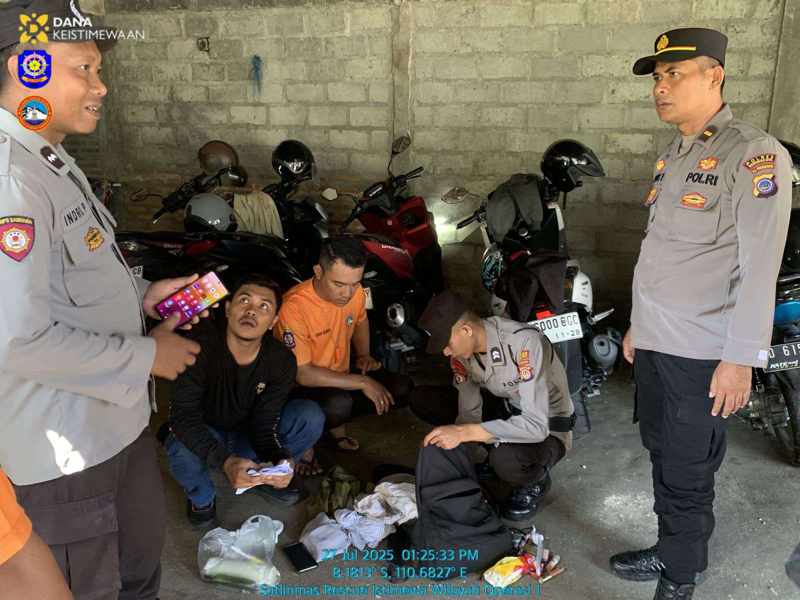 Laporan tersebut langsung disampaikan kepada Polsek Tepus sehingga dilakukan identifikasi oleh Polsek Tepus dan ditemukan tas berisi HP, pakaian, dan dompet yg di dalamnya berisi identitas SIM serta sejumlah barang lain.